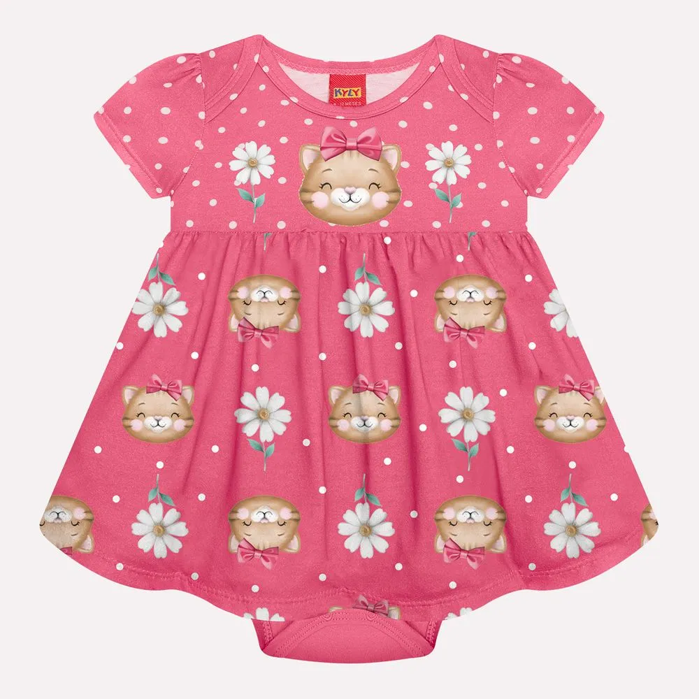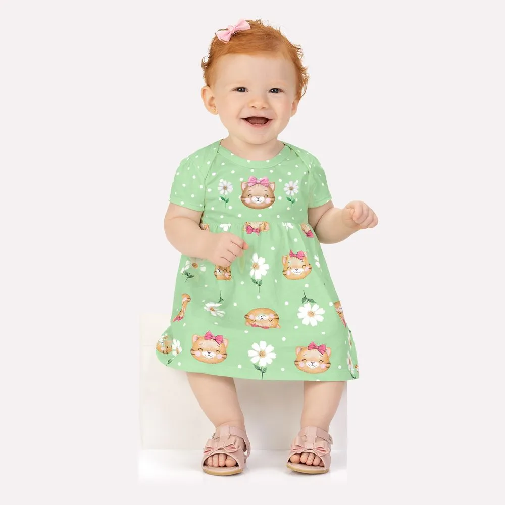 Confeccionado em meia malha 100% algodão, o vestido oferece um toque suave, conforto e excelente respirabilidade para a pele sensível do bebê. A modelagem prática inclui um body interno que garante segurança e conforto extra, além de liberdade de movimento.
